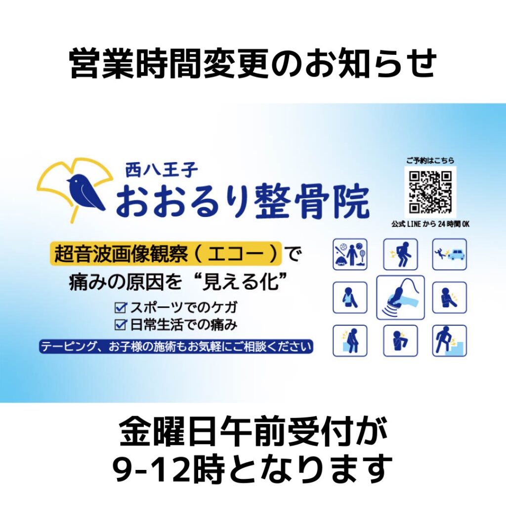 先日お知らせしております通り、4月より金曜日午前の受付時間が変更となります。